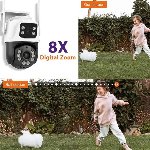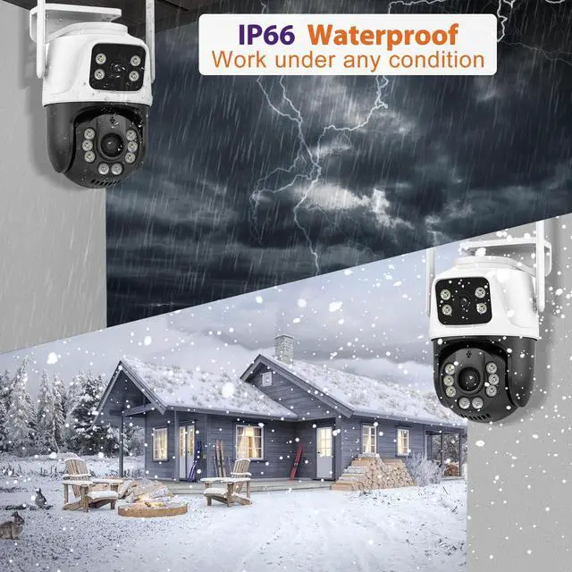 Comprehensive Protection: Equipped with lighted alarms, two-way audio, AI detection, auto-tracking, and smart alerts, all your security needs. Easy to install and setup, IP65 waterproof rating to withstand rain and snow. Outside camera wireless for car parks, warehouses ^^ 2.4G