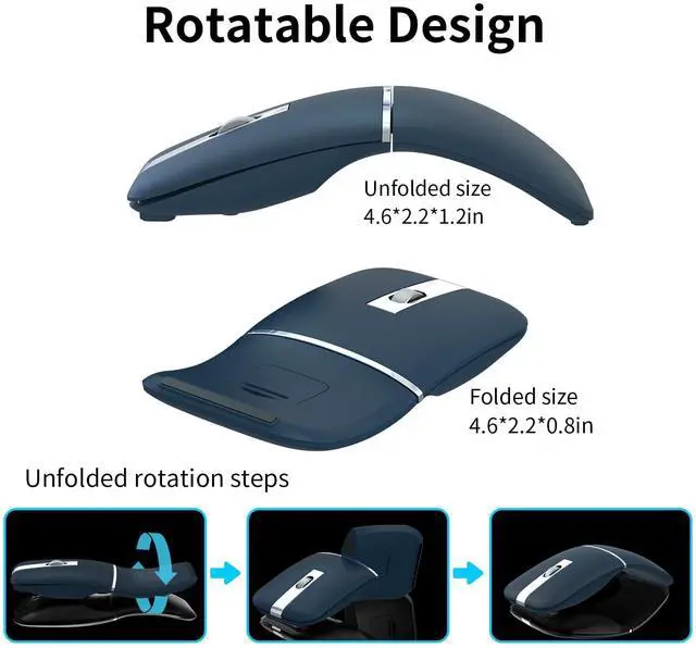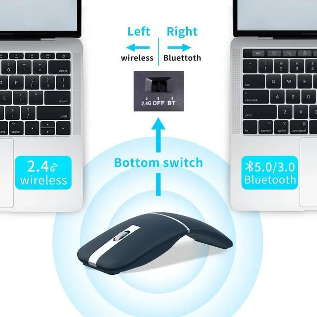 New Upgrade Dual Mode Mouse- 3-speed DPI adjustable from 1000-1600-2400. The mouse can be connected to your device through Bluetooth 5.0 / 3.0 or USB receiver. You Can Switch to any mode by sliding the mode switch button at the bottom of the mouse. *The Bluetooth mode does not require a USB receiver, and the 2.4G mode can be used by inserting a USB receiver. * ^^ Ultra Slim and Lightweight- The mouse can rotate 360 degrees, and in an arc-shaped state, it can fit the curvature of the palm. In a flat state, the size is ultra-thin and easy to put into pocket or laptop bag and ultra space saving.