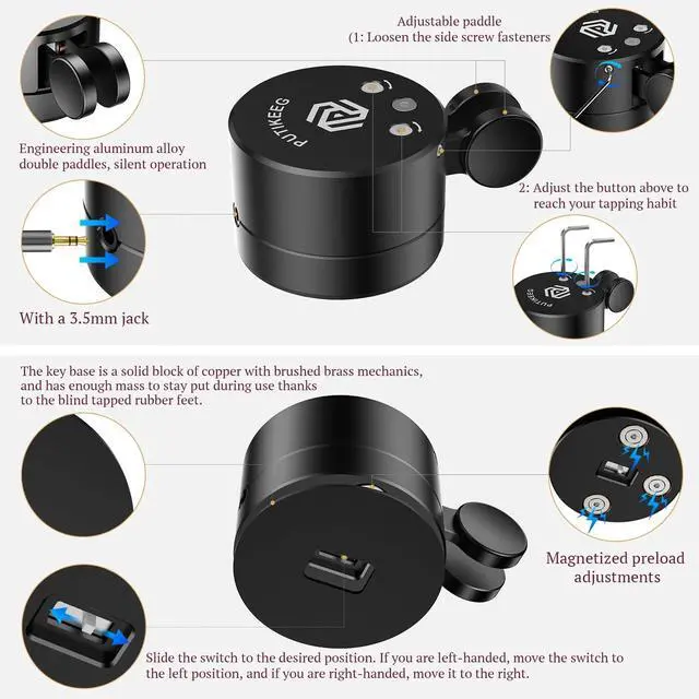 Putikeeg Mini Morse Code Key - CW Dual Paddle with Magnetic Base, Magnetic Return Paddles Morse Lambic Key for Amateur Ham Radio