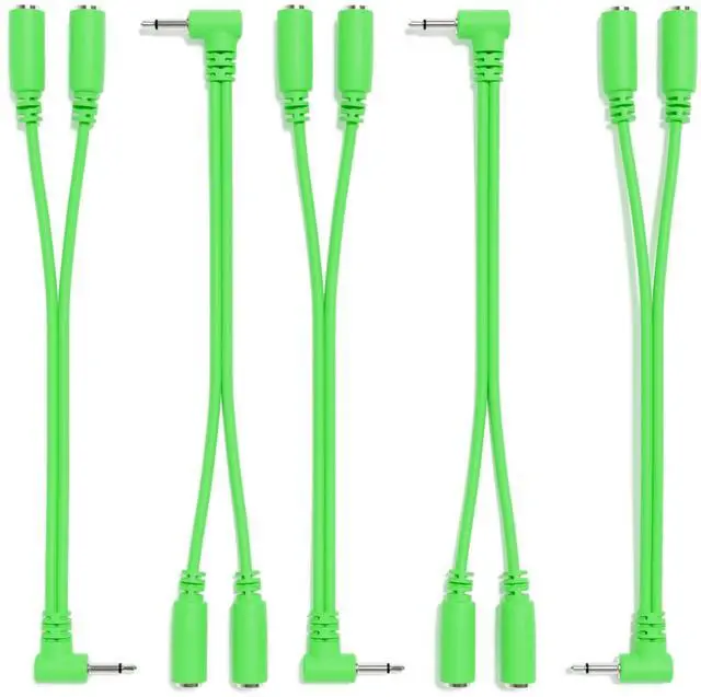 ExcelValley - 5-Pack - Right Angle Mono Splitter Y Patch Cables - TS 3.5mm 1/8" Eurorack Synth Synthesizer [Green]