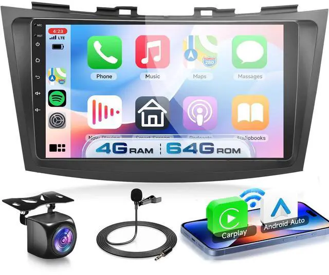 4G+64G Android 15 Car Radio Stereo for Suzuki Swift 2011 2012 2013 2014 2015 with Wireless Carplay Android Auto, 9 Inch Touchscreen Car Radio with Bluetooth 5.0, GPS Navigation, 32 EQ, FM Radio, WiFi, SWC, EQ, Vioce Control, Backup
