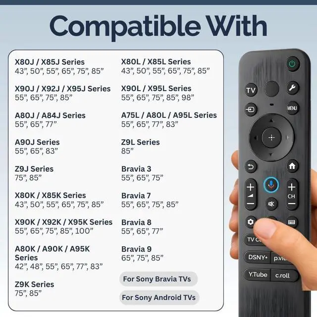 No complicated programming is required. Lightweight and comfortable to hold, this remote is built for long viewing sessions, with responsive buttons designed to last. Its a dependable replacement that restores full control to your TV experience. Compatible with Bravia Google TV models that shipped with RMF-TX920U, RMF-TX910U, RMF-TX820U, and RMF-TX810U, including the X90J, X95J, A80J, A90J, A95K, A95L, Z9J, X90K, X90L, and more.