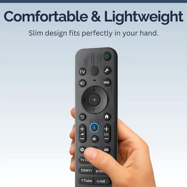 The RMF-TX920U universal TV remote is the ideal solution when your original controller is lost or no longer working. Designed for TVs, it combines technology to deliver fast, reliable performance. With a built-in Assistant button, you can search, launch apps, and adjust settings using just your voice. Dedicated hotkeys for NTFLX, YouTube, P. Video, DSNY+, Bravia Core, and Crunchyroll make streaming quick and effortless. Setup is simple basic functions work instantly through voice features pair in seconds by holding the VOL- and Mic buttons or using the TVs Remotes & Accessories menu.