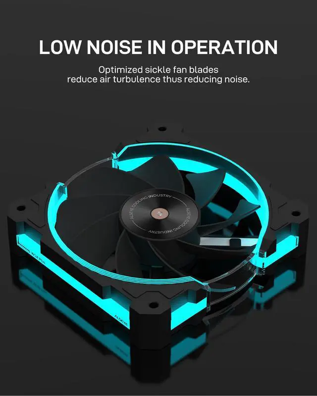Sickle-Shaped Blade Balance Technology: Precision-engineered sickle-shaped blades optimize airflow stability and static pressure ( 27.99 ~ 77.74CFM ^^ 0.44 ~ 3.39 mm/HO), delivering efficient cooling with minimized turbulence noise.