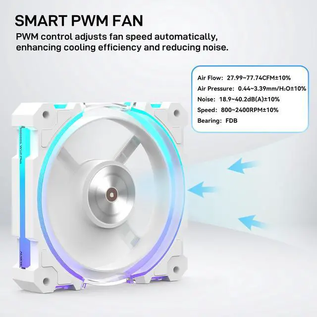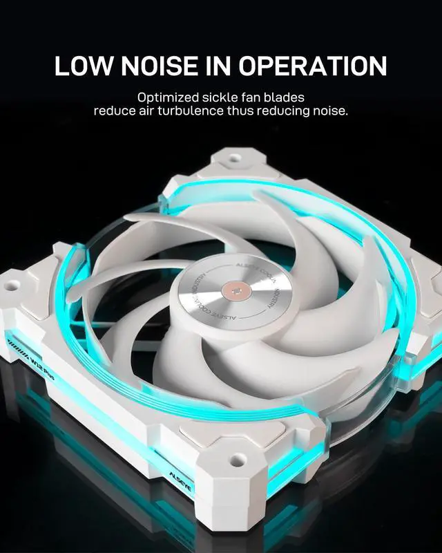Sickle-Shaped Blade Balance Technology: Precision-engineered sickle-shaped blades optimize airflow stability and static pressure ( 27.99 ~ 77.74CFM ^^ 0.44 ~ 3.39 mm/HO), delivering efficient cooling with minimized turbulence noise.