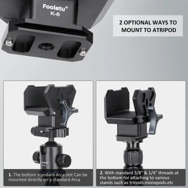 The bottom has 3/8" mounting holes for direct mounting on a tripod or monopod with threads. ^^ The large locking knob reduces extra weight and ensures easy adjustment even with gloves on. Rubber pads on the inner side of the saddle increase friction with the loaded equipment and provide protection from scratches after powerful shock. ^^ This shooting rest attachment is tailor-made for rugged, spot, and stalk type hunting adventures. Experience the perfect blend of durability and portability, as the attachment effortlessly complements your outdoor pursuits, making it an essential tool for any hunting enthusiast.