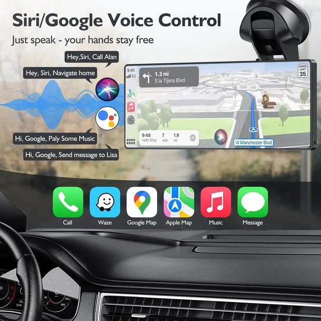 ^^ Wireless Mirror Link & Audio OutputCar stereo carplay supports wireless mirror link for almost all Apple/iPhone and Android smartphones. Easily mirror maps, movies, videos, and apps to the 10.26" HD screen, with audio via built-in speaker, AUX, FM, or bluetooth 5.3 for a seamless in-car entertainment experience. ^^ Easy Installation & Wide CompatibilityThis CarPlay screen is quick to installno need to disassemble your dashboard. It comes with both a suction cup and an adhesive mount, allowing flexible placement on your windshield or dashboard. The adjustable design ensures a comfortable viewing angle for safer, hands-free navigation.
