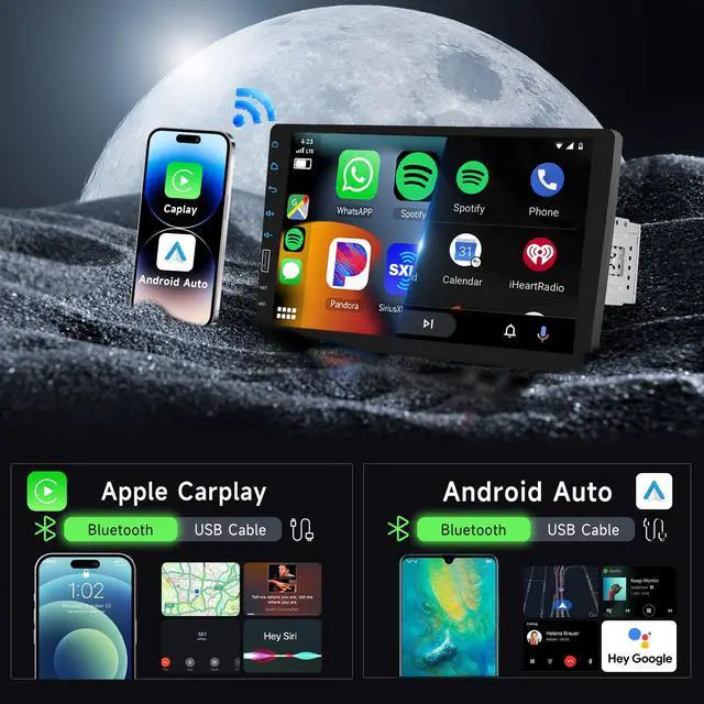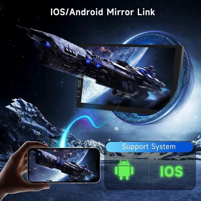 Wireless Carplay & Wireless Android autoSingle din radio support Wireless Carplay/Android auto, You can choose wireless & wired connection to carplay/Android auto, connect to mobile phone, access mobile phone address book, mail, notification, map navigation, music, video and other information, and realize voice control. ^^ Mirror Link for Android/iOSSingle din touchscreen car stereo radio supports mirror link for Android and iOS phones, easy to sync your mobile phone via the USB to display on the car stereo screen, enjoy all your phone features such as navigation image, movies.