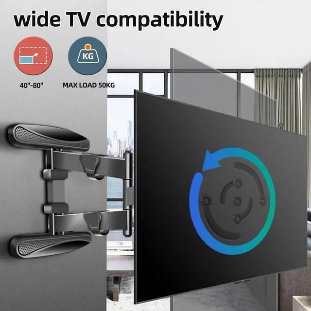 Portrait TV wall mount: This TV wall mount supports horizontal rotation to vertical screen playback. Center of the bracket adopts five axis rotation, which is sturdy and durable. You can cast your smartphone to the TV for vertical screen playback, and the small screen will become larger. It is suitable for users who require a large vertical screen. Such as live streaming, video production, fitness videos, etc ^^ vertical screen