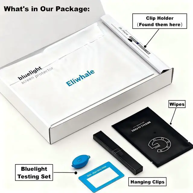 Protect Your Eyes HealthEliWhale 24 inch anti-blue light screen protector effectively blocks 99% of blue light and other harmful rays from electronic devices, and also has an anti-glare function to prevent dry eyes after long hours of work and relieve eye fatigue. The light transmission rate is up to 96%, allowing you to see the screen clearly. ^^ Clever DesignEliWhale listens to the new voice of consumers, our privacy film adopts a hanging design, the snap-in installation is divided into two parts, A and B.