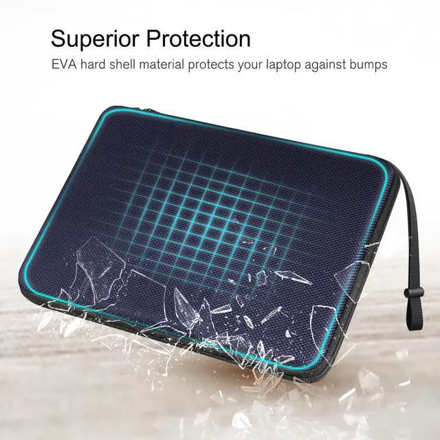 Wide CompatibilityInternal Dimension: 12.6 x 9 x 0.8 inches, compatible with 13.6" MacBook Air M5 A3449 M4 A3240 M3 A3113 M2 A2681 (2026 2025 2024 2023 2022), 14" MacBook Pro M5/M4/M3/M2/M1 A3434 A3401 A3185 A2918 A2992 A2779 A2442 (2026-2021) Pro/Max, 13-inch MacBook Neo 2026 A18 Pro chip, 13.3" MacBook Air M1 A2337 A2179 A1932, 13.3" MacBook Pro M2 M1/A2338 A2251 A2289 A2159 A1989 A1706 A1708, 13-inch iPad Pro M4 / iPad Air M2 2024, 12.9 '' iPad Pro 6th/5th/4th/3rd Gen, Compatible with Microsoft Surface Laptop 13", Surface Pro 12", Surface Laptop 13.8 '' 7 2025 13.5 '' 6/5/4/3/2/1, 13.5" Surface Book 3/2/1, Dell XPS 13, and other tablets up to 13". ^^ Shockproof Laptop SleeveThe MacBook Air/Pro sleeve is consists of a semi-hard EVA shell with anti-scratching polyester to protect your laptops from external shock, scratches, dust and bumps. ^^ Superior Protective SleeveThis laptop sleeve equips with 5mm thick padding, provides your computer/tablet with 360 all-around protection, premium & durable YKK zippers for secure and long-lasting usage. ^^ Water-resistant Laptop CaseThe outer fabric of the laptop carrying case is made from 1600D High-Density Polyester, which provides better water-repellency and wear-resistance than normal nylon.