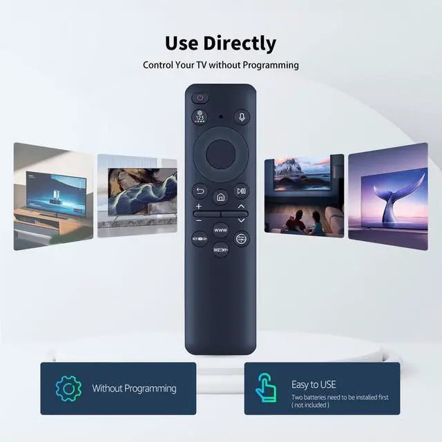 Compatible ModelsPerfectly designed as a replacement for your TV remote, this remote control is compatible with BN59-01432J voice models including UN50CU8000 UN55CU8000 and more. It also works seamlessly with various Smart TVs, Blu-ray players, and home theater systems. Whether you need a backup or a replacement, this universal remote ensures full functionality without compatibility issues. ^^ Easy to UseExperience effortless control with this user-friendly remote control for BN59-01432J voice. The intuitive layout features clearly labeled buttons for power, volume, channel, voice command, and smart hub access. No complicated setup is requiredsimply insert the batteries and start using it right away.