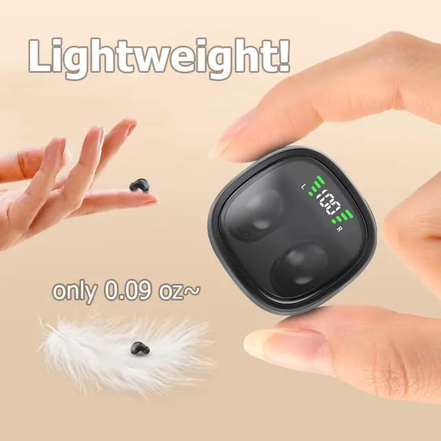like a peanutFeatures: 1, The small earbuds is equipped with the latest Bluetooth 5.3 chip, with fast transmission speed and stable connection, providing you with a low-latency listening experience. 2, Using Graphene diaphragm unit to bring high-fidelity sound quality, better high-frequency extension performance, clear and natural sound, making the sound more powerful and powerful. 3, You can barely notice the presence of invisible earbuds when you wear them on the front. If shown from the side, it is small enough for some special occasions. 4, It really no burden to wear for a long time, even kids can wear it easily, so comfortable that forget small earbuds exists. 5, One Step Connection - This smallest invisible earbuds are super easy to connect. Open the cover and the wireless earphones will automatically turn on and pair with each other.