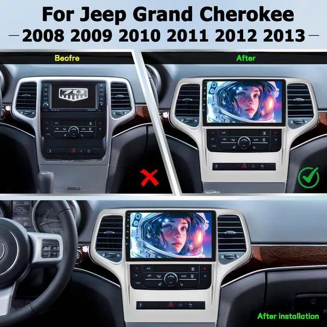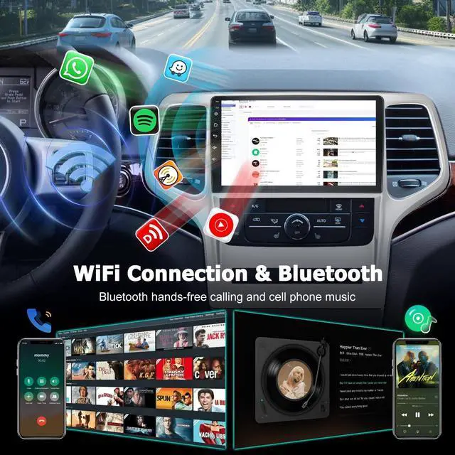 Models & Plug-and-Play]: Car radio designed for Jeep Grand Cherokee 2008 2009 2010 2011 2012 2013, this Android radio upgrade features true plug-and-play functionality for a hassle-free setup; Powered by the latest Android OS, a 4-core CPU, 2GB RAM, and 64GB ROM, its 9-inch touchscreen enables smooth downloading and operation of various applications ^^ [Wireless