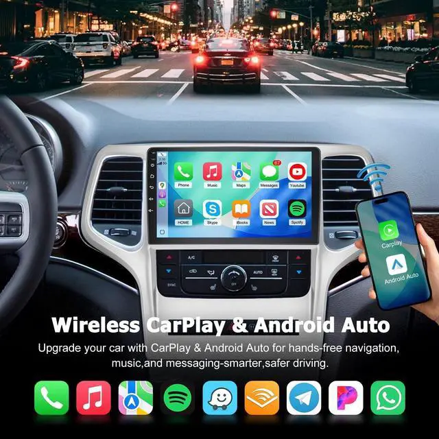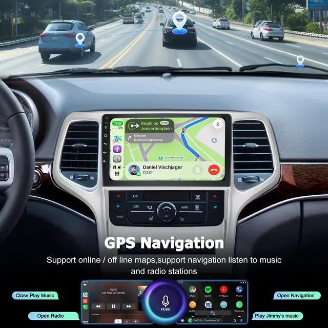 CarPlay & Android Auto]: Elevate your driving experience with this Jeep Grand Cherokee radio, which supports both wireless and wired CarPlay/Android Auto; Integrated with voice assistance, it lets you make hands-free calls with clear audio, no need to take your hands off the wheel; You can also easily access contacts, emails, notifications, map navigation, music, videos, and more ^^ [Offline & Online