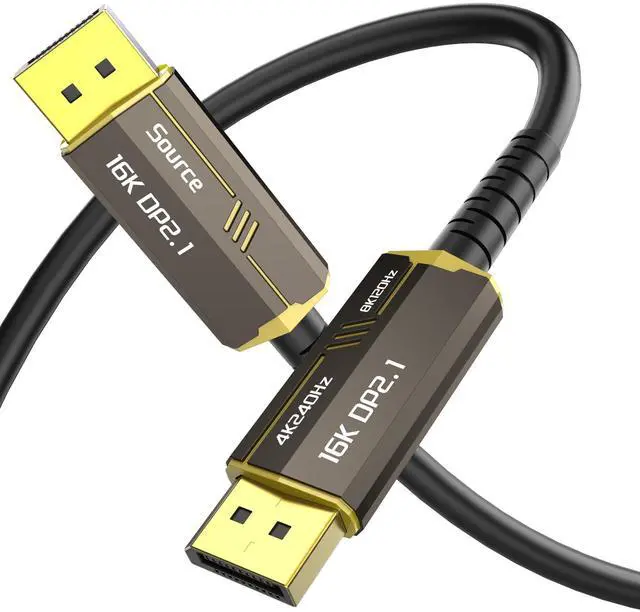 8K Fiber Displayport Cable Display port to display port cable 50ft supports High-speed 54Gbps, It is support 16K@60Hz, 10K@60Hz, 8K@60Hz/120Hz, 5K@60Hz, 4K@240Hz / 165HZ / 144Hz / 120Hz / 60Hz, 2K@360Hz / 240Hz / 165Hz / 144Hz. Support for Display Stream Compression (DSC), Forward Error Correction and HDR meta transport. Backward compatible with DisplayPort 2.0, 1.4, 1.3, 1.2.