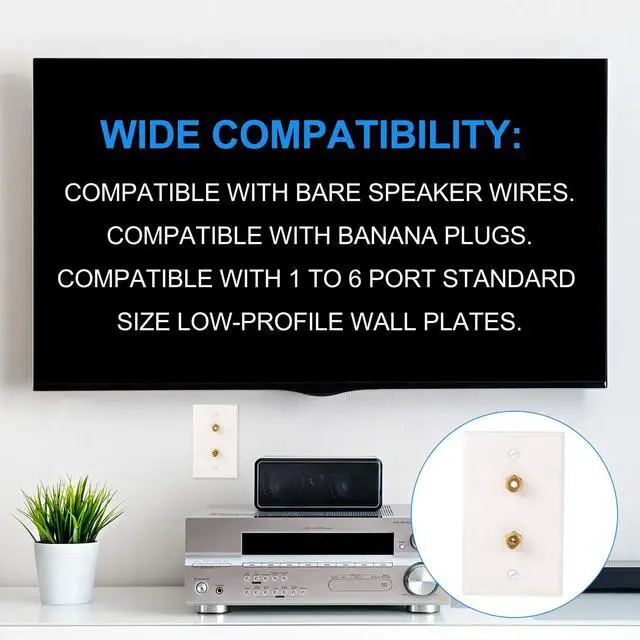 Compatibility: binding post keystone jack inserts with rings can work with most standard white keystone wall plates or panels ^^