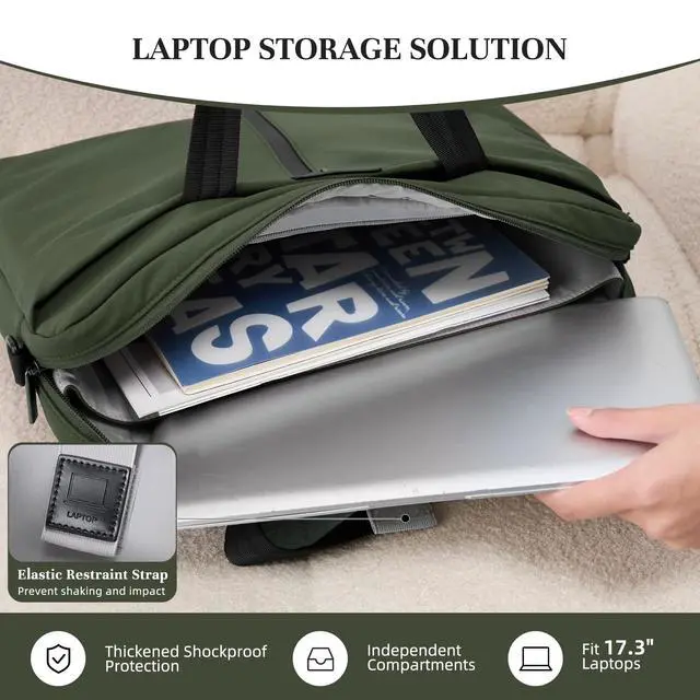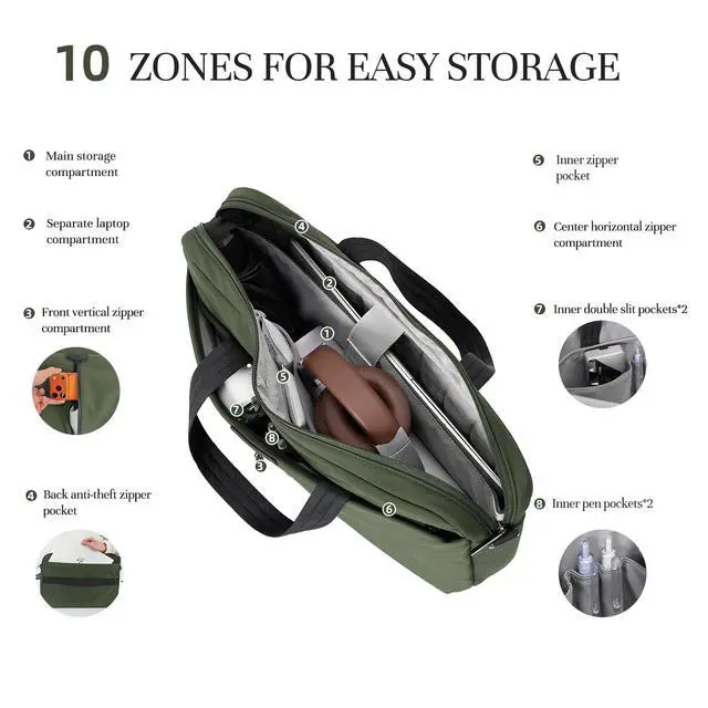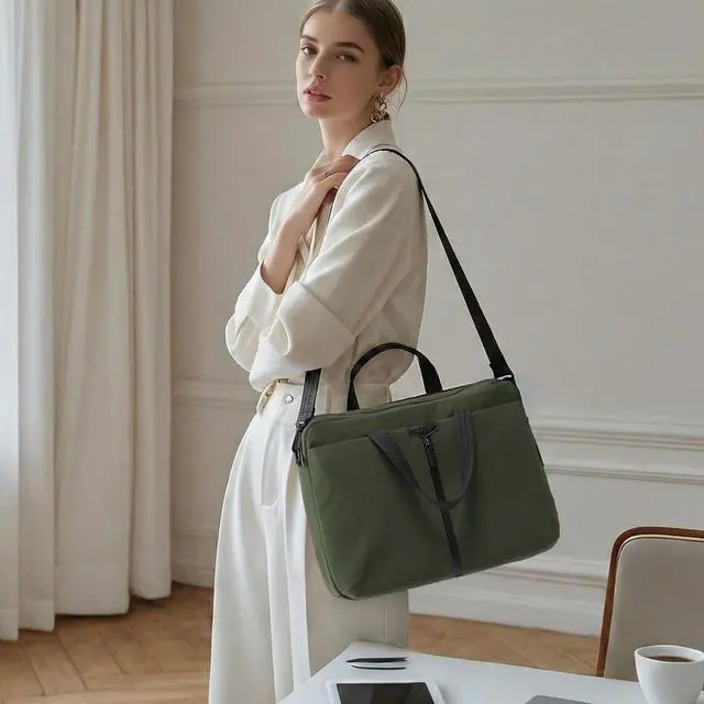 DescriptionTIMEET: Where City Life Meets Effortless Style. Timeet is born from the rhythm of the modern metropolis. We understand that urban life is multifaceted, demanding, and constantly in motion. Our mission is to equip you with bags that are not just accessories, but essential partners engineered for versatility, style, and intelligent organization. 3-in-1 Versatile Design for On-the-Go ProfessionalsThis sleek laptop briefcase adapts to your daily rhythm with ease. Weighing only 1.47 lbs, its detachable wide shoulder strap enables effortless switching between hand-carry, underarm, and crossbody modesmaking it as suitable for the boardroom as it is for weekend travel. With airline-friendly dimensions, you can move seamlessly from work to wander, all in polished style. Unmatched Laptop Protection & Smart OrganizationEngineered for security and order, the bag features a dedicated 17.3 -inch laptop compartment with triple-layer defense: a water-resistant outer, 5mm shock-absorbent padding, and a soft plush interiorall secured by a genuine leather-tagged elastic strap. Paired with a smart 10-zone layout including a hidden mouse pocket and a rear luggage strap slot, it keeps everything securely in place and instantly accessible. Durable Build Backed by Rigorous TestingCrafted from classic nylon checkered fabric with a 34 level water-repellent finish, this briefcase stands up to rain, wear, and daily demands. Each componentfrom the reinforced SBS zipper to the stress-tested handles and strapshas undergone extensive quality checks to ensure it remains a reliable companion through every commute, meeting, and journey ahead.