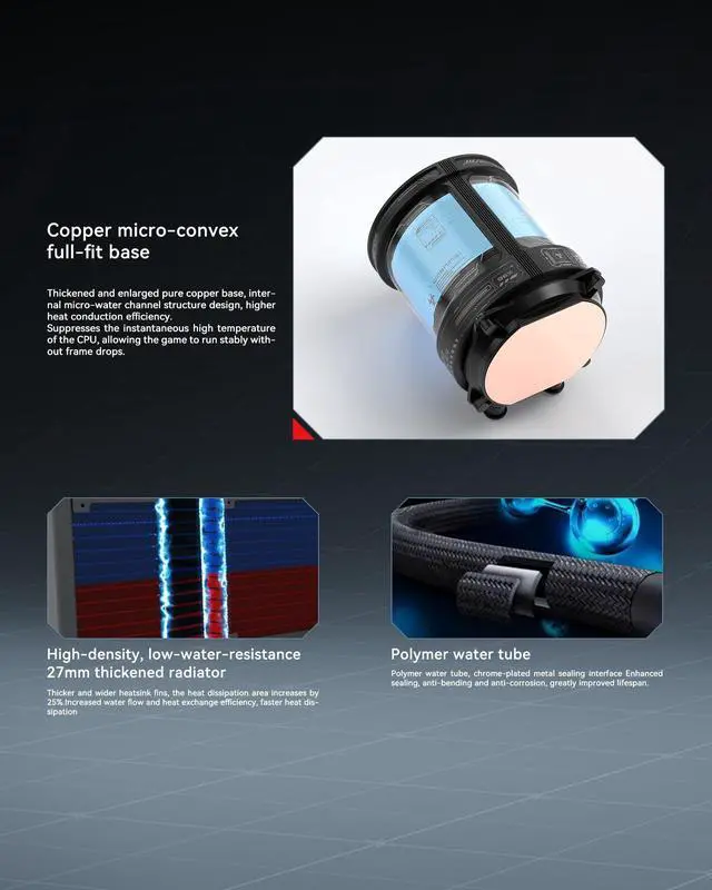 ^^ High-Efficiency Cooling Performance: Equipped with a 360mm 350W TDP aluminum radiator and ceramic bearing pump, delivering powerful heat dissipation for overclocked CPUs and intense gaming sessions. ^^