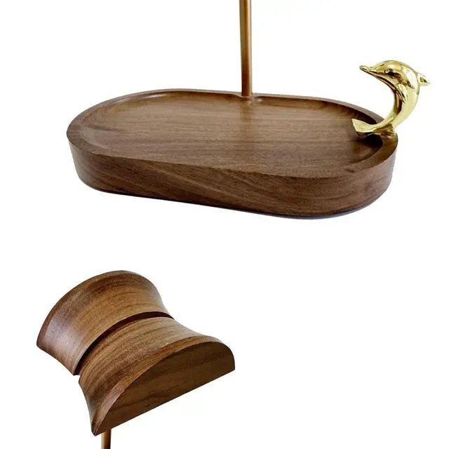 Elegant Design: Meticulously handcrafted from solid American black walnut, this wooden headphone stand captures the quiet warmth of natural wood, elevated by the radiant charm of a gold-colored dolphin accent and brass-finished aluminum pillara refined balance between craftsmanship and artistry ^^