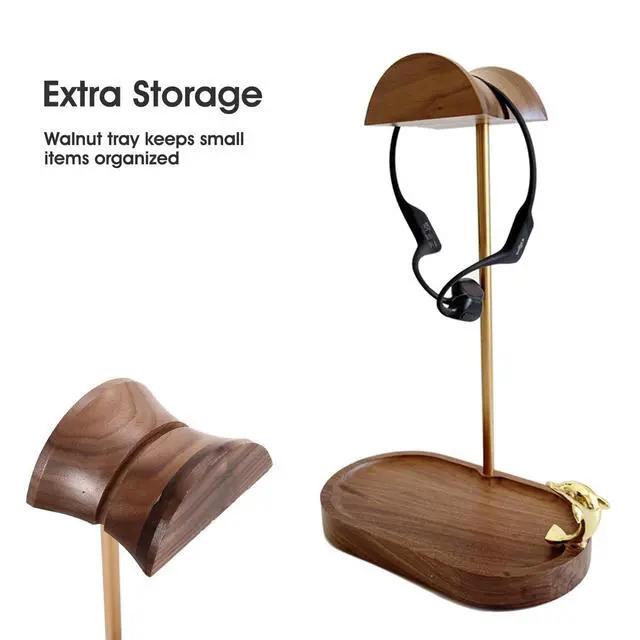 Functional Organization: Our walnut headphone holder stand features an integrated storage tray at the base, perfect for keeping small essentials like apple AirPods, earphones, keys, cables, or USB drives neatly organized ^^