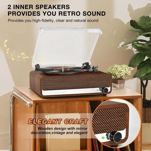 Record Player Package: 1* Turntable1*User Manual1*45 rpm Adapter1* 5V, 1.5A Power CordRecord