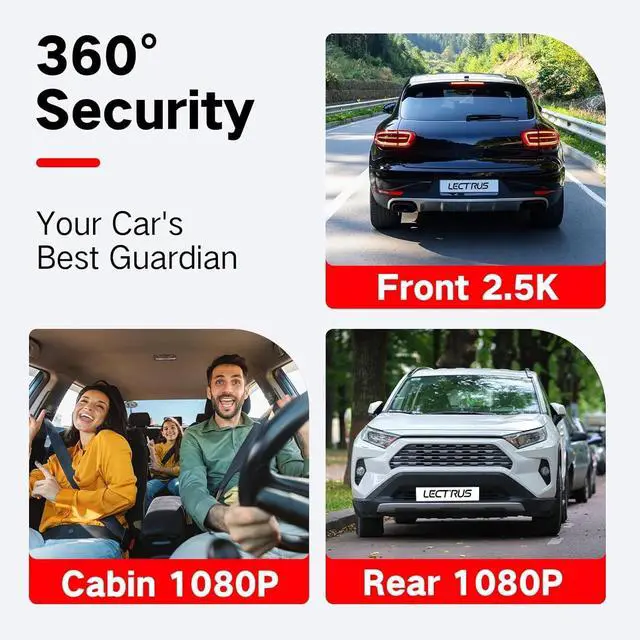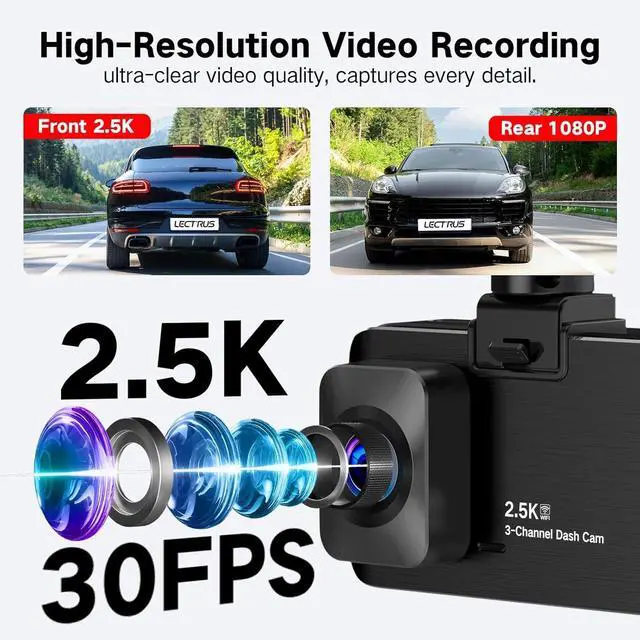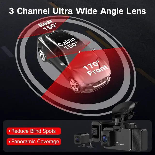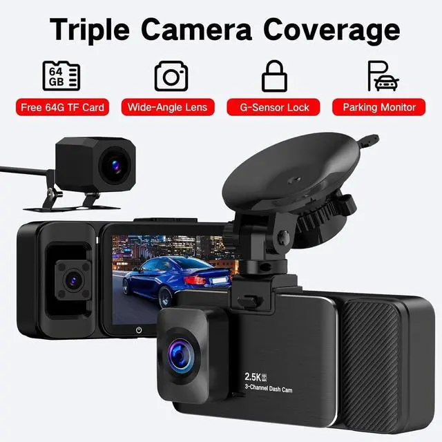 Coverage: The main camera supports 2.5K resolution, providing ultra-clear video quality that captures every detail. The front and rear cameras both support 1080P resolution. The triple-camera system covers the front, rear, and interior, ensuring no blind spots. ^^ Collision Detection and