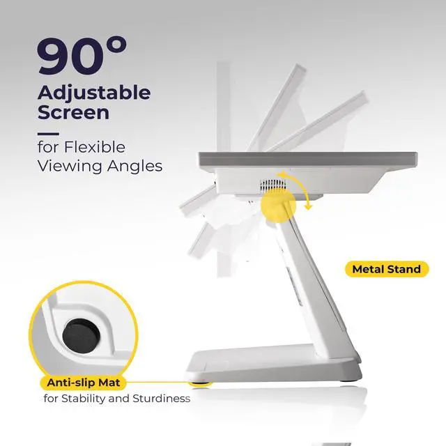Stable and Adjustable Stand: The durable metal base provides excellent stability, and the monitor is compatible with VESA mounts. Unlike products with flimsy plastic frames, this POS screen is built