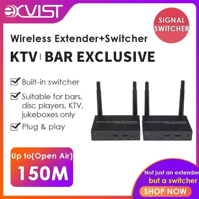Exclusive Use for Bars, KTV, Disc Players & Jukeboxes Designed for high-performance video streaming in bars, KTV, and jukebox setups. The receiver supports 2x HDMI inputs and 1x HDMI output, with a remote control for easy output switching. ^^ High-Quality Video Functionality Supports HDMI video input encoded with H. 265, delivering clear 1080P@60fps resolution. Functions as a traditional HDMI wireless transmitter/receiver and allows direct streaming via RTSP protocol for use with VLC player. ^^ Versatile Applications Ideal for a wide range of settings, including churches, home use, video conferences, video surveillance, and live broadcasts.