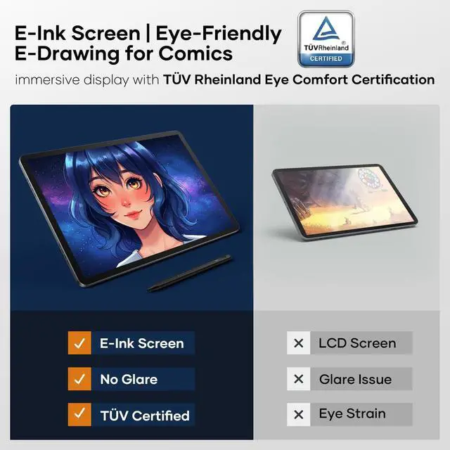 Advanced Eye Care Technology: Minimize eye strain with the Frunsi tablet's U-paper technology and TUV Rheinland certified low blue light filter. This advanced eye care feature provides comfortable viewing for extended periods, ideal for professionals and hobbyists alike. ^^ Immersive Display and