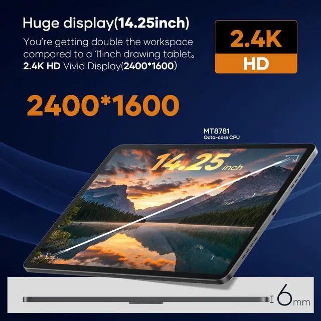 Ultra-Portable Design: Enjoy an expansive and comfortable canvas with a 14.25 -inch screen boasting a 2400x1600 resolution, 3:2 aspect ratio, and over 72% NTSC color gamut. The 16.7 million colors and nanomatte finishing ensure accurate color reproduction. At just 6.95 mm thin and 760g, this ultra-portable design is perfect for on-the-go creativity.