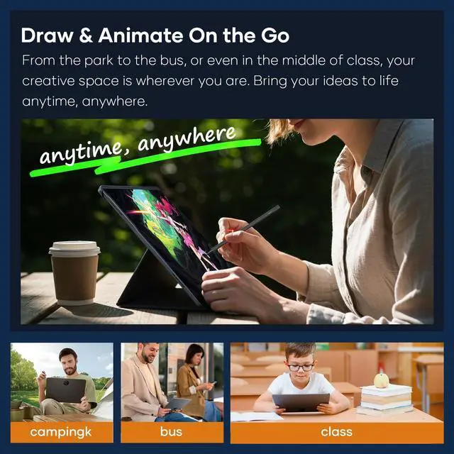 ^^ Artists and Professionals: Designed for artists, designers, and professionals who demand the highest quality in a drawing tablet no computer needed, the UT3 tablet offers a 4096 level pressure-sensitive stylus for precise control and a natural drawing experience. With an 10000mAh battery, 8GB RAM, and 256GB storage, it's equipped to handle your most ambitious projects without the need for external devices.