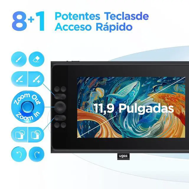 UE12 PLUS drawing monitor offers a parallax-free drawing experience and guarantees accurate, high-resolution drawings down to the smallest detail. ^^ Pencil-like battery-free stylusThe stylus is equipped with two handy programmable shortcut keys. Thanks to battery-free electromagnetic technology, this pen doesn't need to be connected by cable or recharged, giving you the freedom to work as you please. ^^ Easier ConnectionThe UE12/UE12 PLUS drawing display offers quick and easy connection to PC, Mac, and Android devices using a full-featured USB-C cable (included), ensuring a hassle-free setup for all your creative needs.