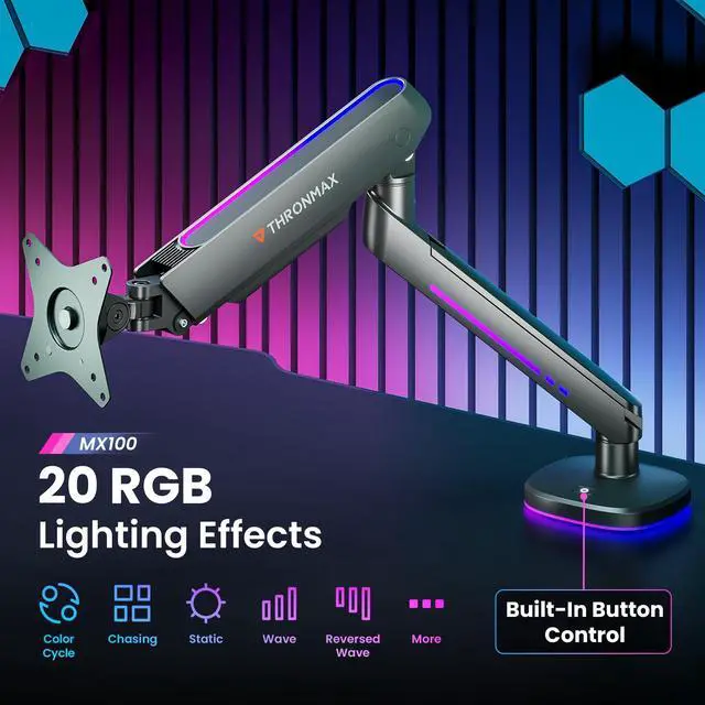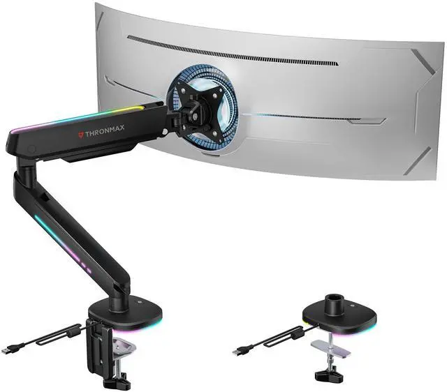 HEAVY DUTY: The THRONMAX MX100 Single Monitor Arm is designed to fit most flat or curved LCD/LED screens ranging from 12" to 45", max load capacity 14KG for flat screens and 12KG for curved screens, with standard Mounting Pattern mounting holes (75x75mm and 100x100mm) ^^