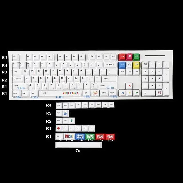Compatible with standard ANSI 108 104 96 87 84 75 68 61 MX switches mechanical keyboard whose space is 6.25 u, namely 11.7 cm