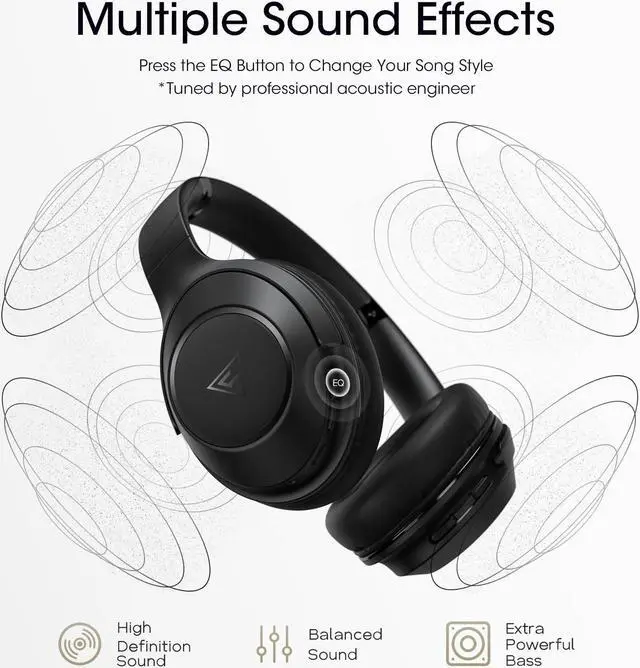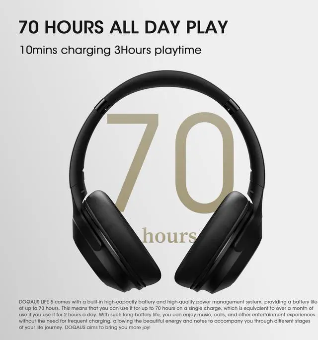 HIFI Stereo Audio with 3 EQ Modes: Equipped with 3 EQ modes tuned by professional acoustic engineer. you can freely switch between well-balanced, bass boosted and high definition sounds. Adopted with dual 40mm dynamic driver, DOQAUS LIFE 5 over ear headphones bluetooth deliver crystal crisp highs, balanced mids and powerful bass. You can enjoy high-quality crystal clear stereo sound with our DOQAUS Wireless Bluetooth Headphones Over the Ear.