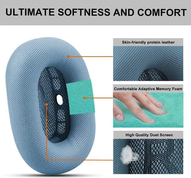 Premium Replacement Ear Cushions for Apple AirPods Max Headphone, Protein Leather Memory Foam Earpads (Leather-Blue)