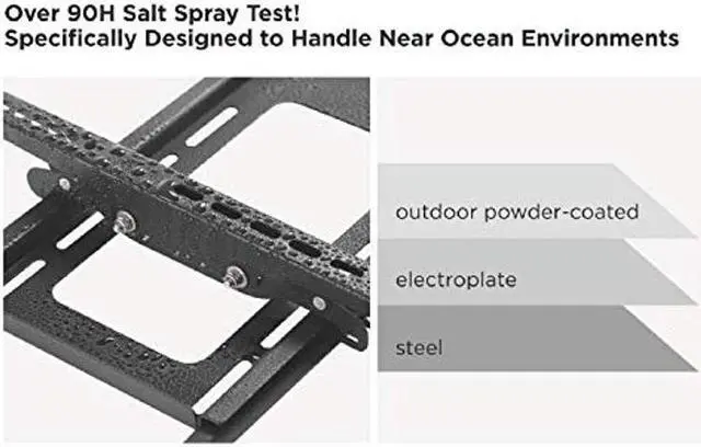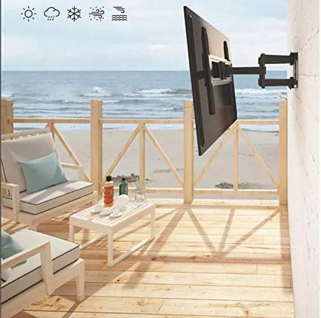 Specially designed for the outdoor environment, the Outdoor Weatherproof Full-Motion TV Wall Mount went through a more complicated process to satisfy the requirement of most users, including added electroplating covered with a high-grade outdoor powder coating finish. Best of all, all screws are made of stainless steel, therefore this TV mount has overcome the 90 hours salt spray test- ensures to handle all kinds of harsh weather! With full-motion mechanism, each seat in your house becomes a viewing sweet spot. If you are looking for a durable outdoor TV wall mount while providing excellent tilt and swivel, this is the best choice for you.