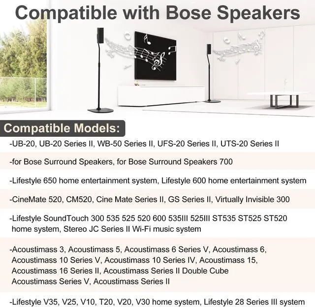 Height Adjustable Speaker Floor Stands for Bose UB-20 Series II, UFS-20 Series II, WB-50 Series II, Surround Speaker 700 and OmniJewel Lifestyle 650 with Brackts and Wire Management