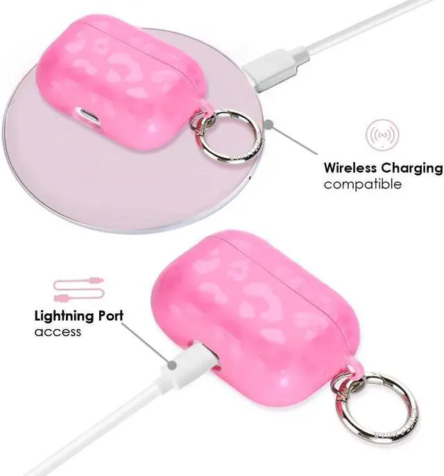 Hot pink leopard case compatible with AirPods 3rd Generation.