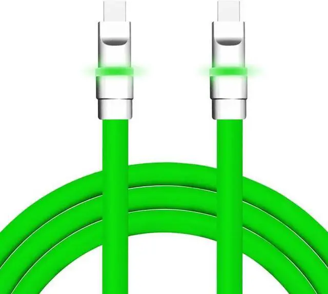 chubbycable Neon Chubby - Fast Charge Cable with Smart Light RGB Color Gradual Light Up LED USB Charging Cable, Green, Type-C to Type-C, 6.6 FT