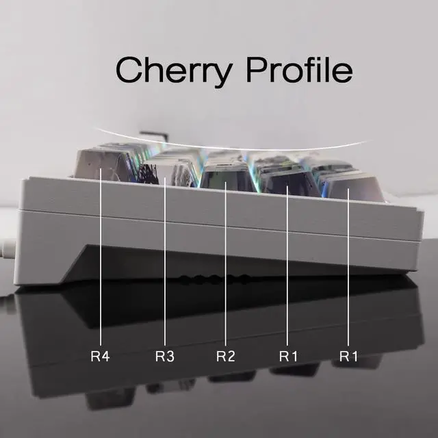 [(Cherry Profile Side Engraved Keycaps)] Cherry profile side engraved Keycaps have larger surface contact and larger finger touch area for long-lasting comfortable typing.You won't get tired even if you type for a long time.