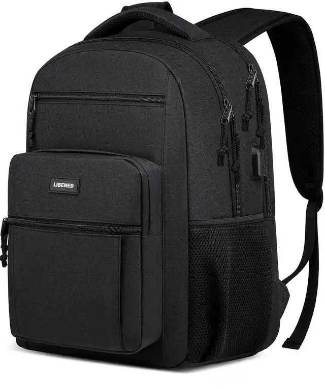 LIBENED School Backpack for Teen Boys and Men, 15.6 Inch Laptop Backpack with USB Charging Port, Anti-Theft Water-Resistant College Computer Bookbag, Ergonomic Straps and Multiple Compartments, Black