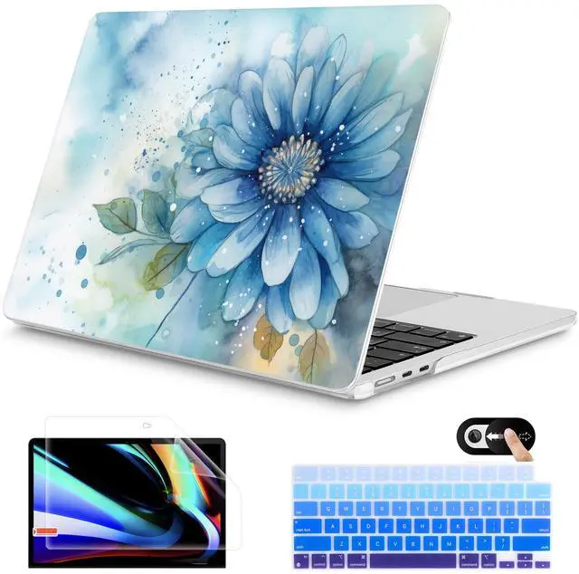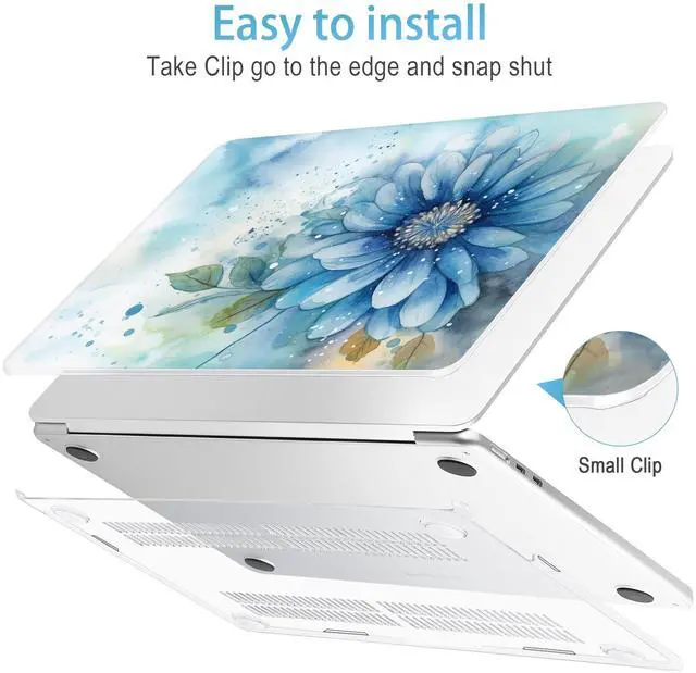 Mektron for 2025 M4 MacBook Air 13.6 Inch A3240 Case Fits 2023 A2681 M2 2024 A3113 M3 Chip with Liquid Retina Display, Printed Plastic Hard Shell Cover for MacBook Air 13.6", Watercolor Blue Flower