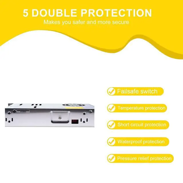 The LRS-600-24 is a high-performance 600W single output switching power supply designed for demanding industrial applications. Delivering a stable 24V DC output at 25A, this unit features 91% high efficiency and a universal AC input voltage range (90-264VAC) for global compatibility. The integrated cooling fan ensures optimal thermal management, even under heavy loads. Comprehensive protection features, including short circuit, overload, overvoltage, and overtemperature protection, safeguard your connected equipment. Built to withstand harsh industrial environments, the LRS-600-24 is 5G vibration resistant and can operate at altitudes up to 2000 meters.