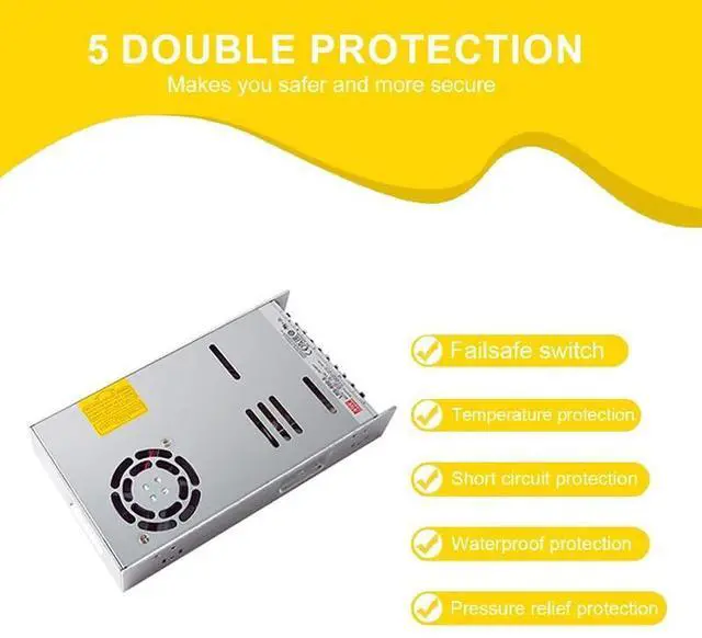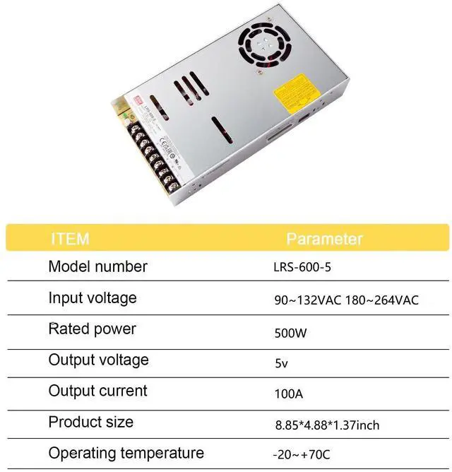 Protection: Your safety is paramount. Certified to UL62368-1 and IEC/EN62368-1 standards, the LRS-600-5 has comprehensive protection features, including short circuit, overload, overvoltage, and overtemperature protection. This ensures compliance with industry safety regulations, protecting your equipment and personnel. ^^ Ideal for