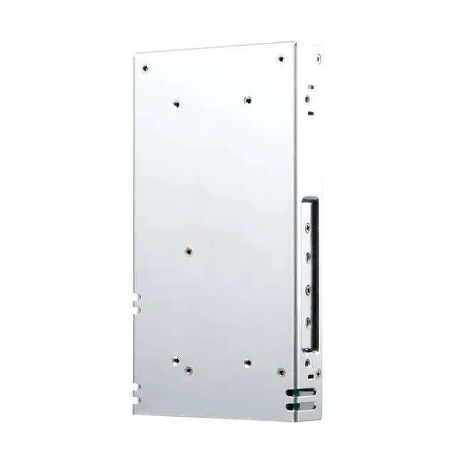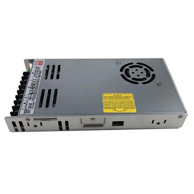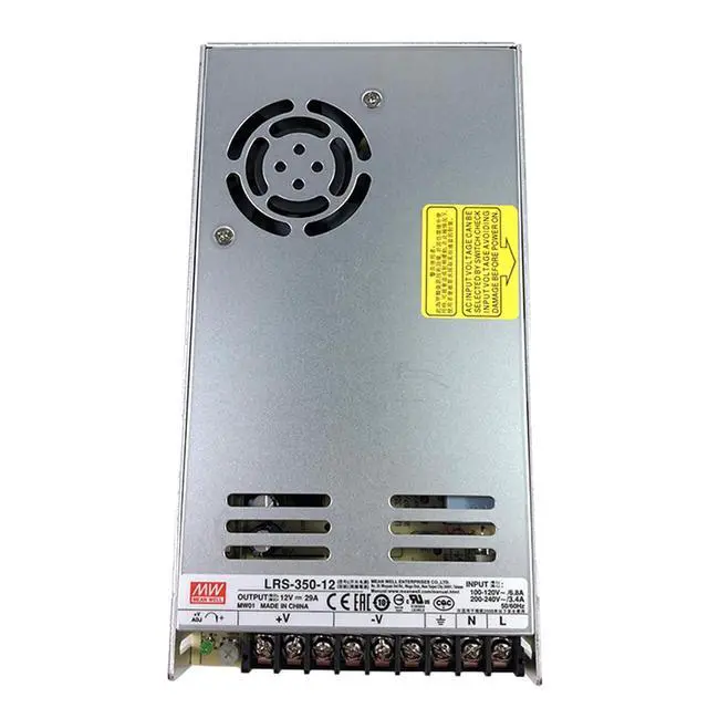 The LRS-350-12 features a universal 90-132/180-264VAC input, making it adaptable to various power sources. Its compact 1U low-profile design is suitable for space-constrained installations.