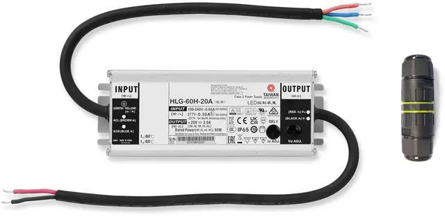 It operates smoothly across a wide input voltage range (90-305VAC) and withstands extreme temperatures from -40F to +176F (-40C to +80C). Safety is a top priority with the HLG-60H-20A, featuring built-in overvoltage, overcurrent, and overtemperature protection to safeguard your LED systems. Whether for residential, commercial, or industrial use, this LED driver offers reliability, efficiency, and durability to meet your lighting needs.