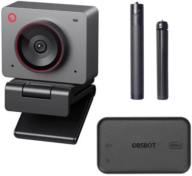 OBSBOT Meet 2 & HDMI Adapter & Tripod Combo, AI Framing & Autofocus, Beauty Mode, Lightweight, Gesture Control, HDR, Dual Microphone, 60 FPS, Web Cam for Streaming, Meeting, Gaming.