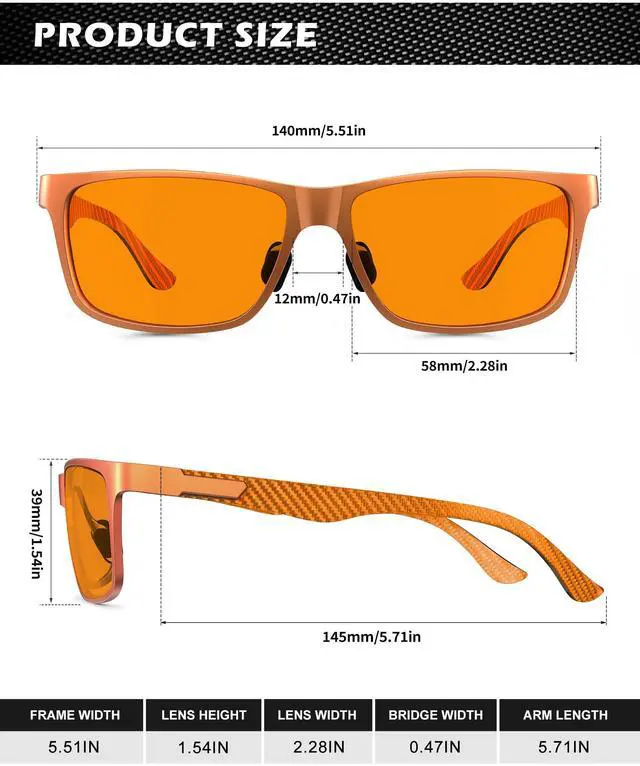 Premium Temple Material: With superior Al-Mg and carbon fiber composite temple, this type of blue light blocking glasses for men is ultra-light than pure metal frame, also more sturdy. No more worries about broken temples. As more suitable for anyone who often work or play games by the computer, do not miss this pair of practical and classic blue blocker glasses.